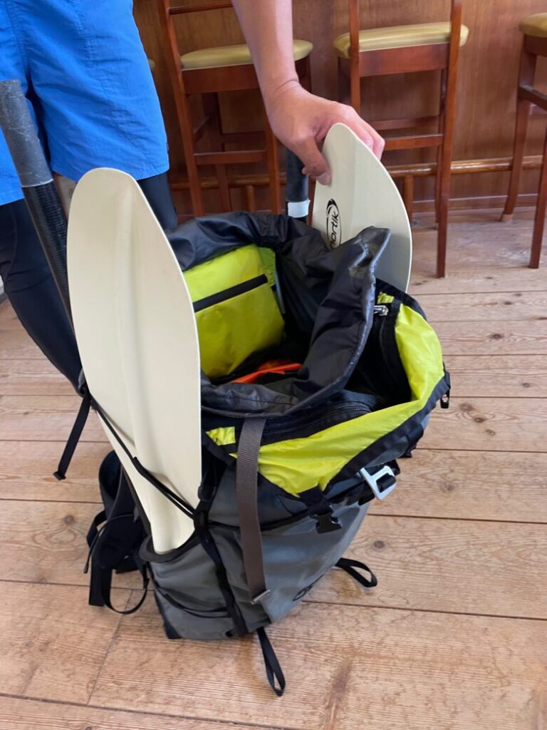 さて、ゆっくりと自然を楽しむといえば、パックラフトも最高でした。30L程度のザックの中に畳むとすっぽりと収まり、座席やパドルも付いてわずか3kg程度の軽量なゴムボートです。歩いてどこにでも持ち運びができ、湖や川を渡り移動することができます。そして、なんといっても多少の波や風ではひっくり返る心配がない抜群の安定性を持ったボートなのです。