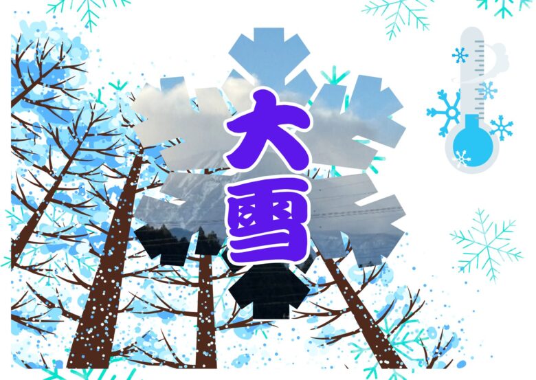 「大雪」とは雪が盛んに降りだす頃という意味で、山の峰々が雪をかぶり、平地にも雪が積もる時期と言われています。