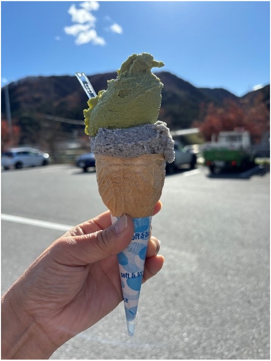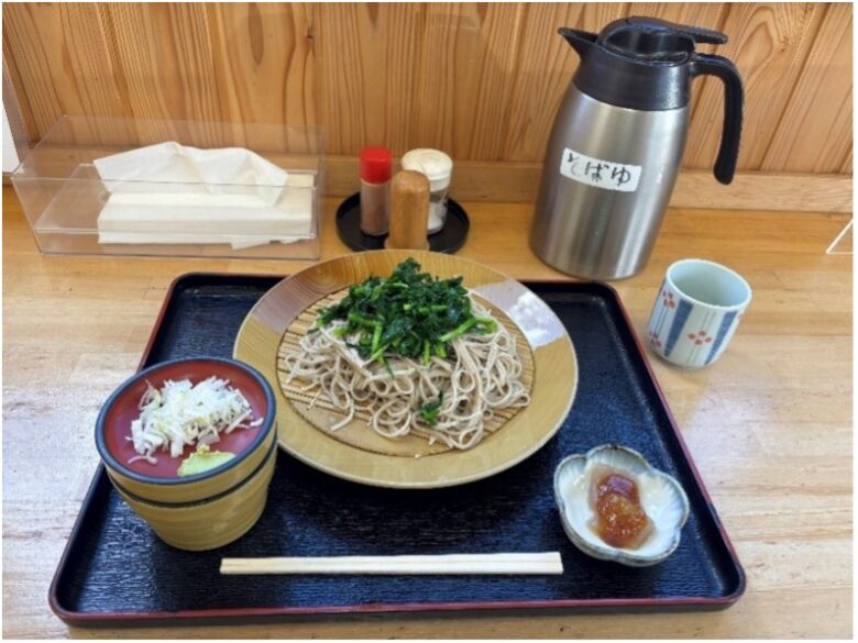 普段一人でお店に入り食事をすることはありませんが、この日は通りがかったお店で自然の景色を堪能しながら、おそばとジェラートアイスをいただきました。