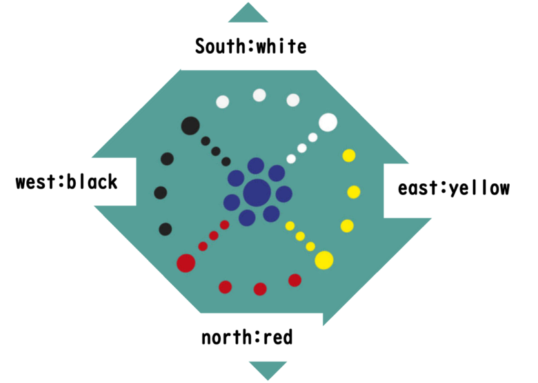 黄色が示すのは東の方角で、太陽が昇ってくる色。